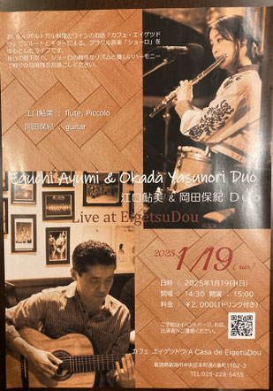 新年をさわやかなDuo が創り出すブラジル音楽ショーロ中心の軽快なリズムに浸ってみませんか